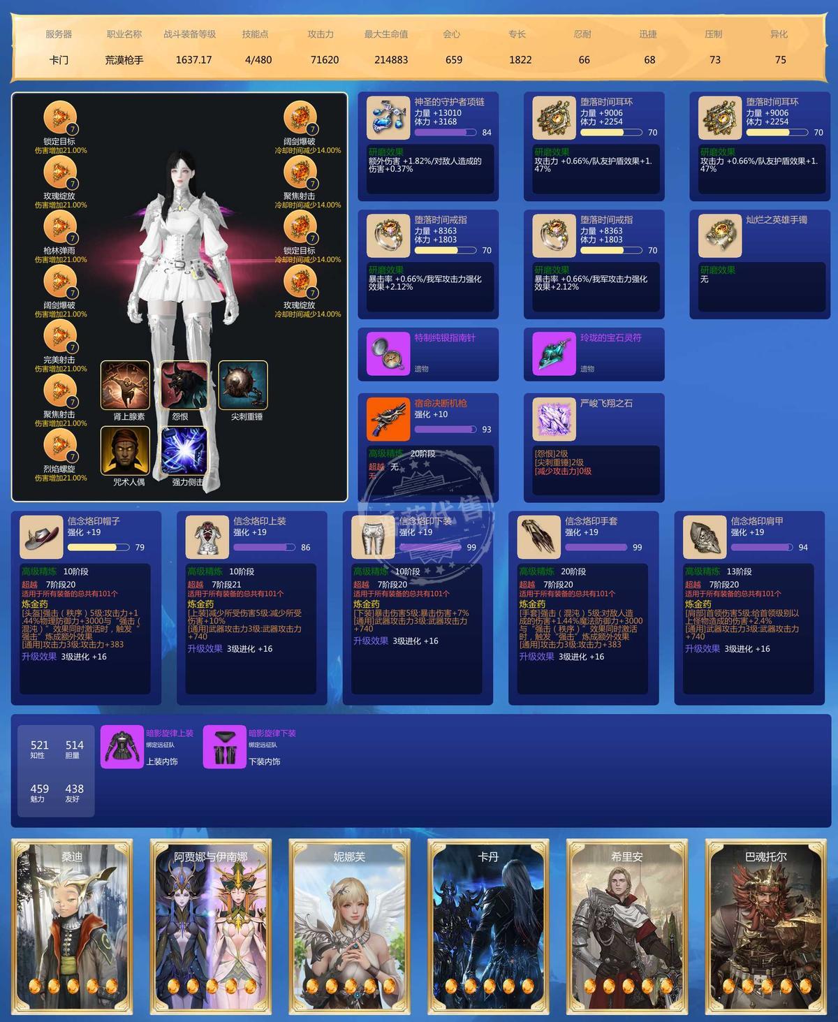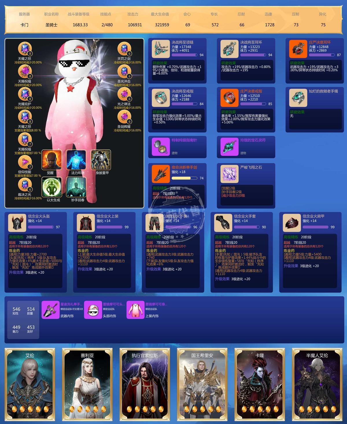 大号23武器.3把20武器.大号女巫刀锋都有97. 5套天空。宝石38个8级。遗物书吃了怨恨腰子人偶侧击速战速决 自玩账号角色细节都不错 小刀。刀锋已经1701了 18W多积分