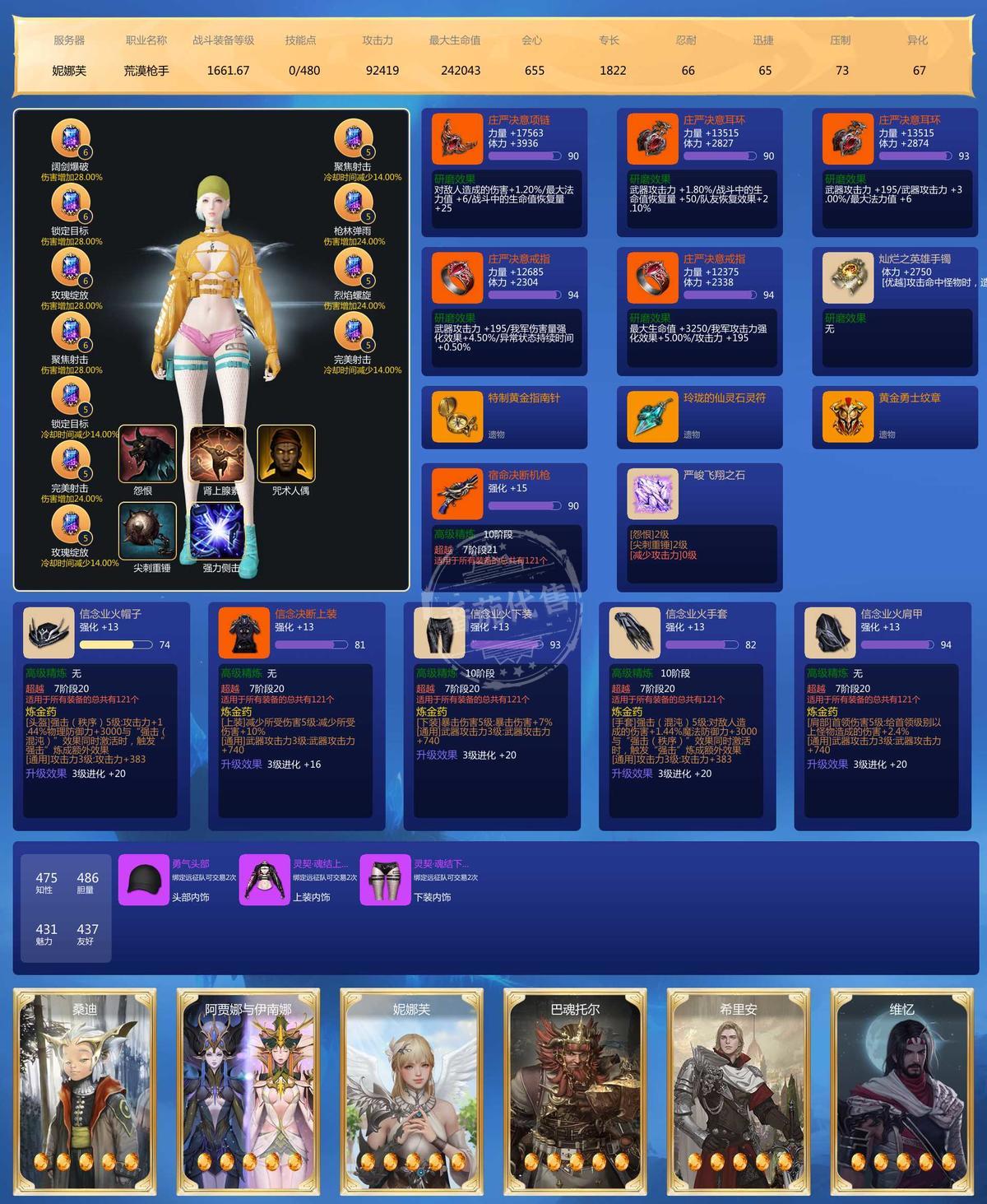 车头女骑高阶毕业, 邮寄额度4百万。 狂战武器和两件防具高阶毕业。 女骑和女枪两个大会员,还有2周左右吧 第二页还有三个角色栏没用。有什么问题可以问客服。 无宝石 一口价