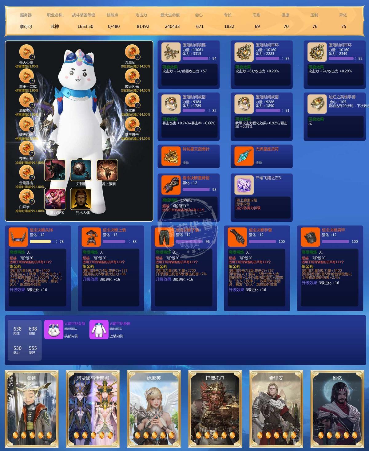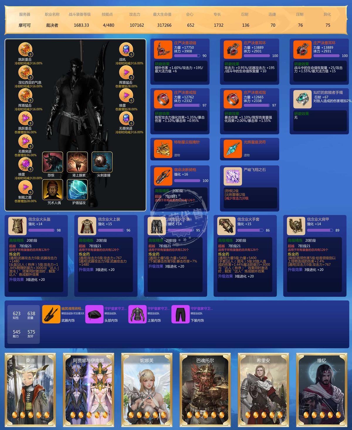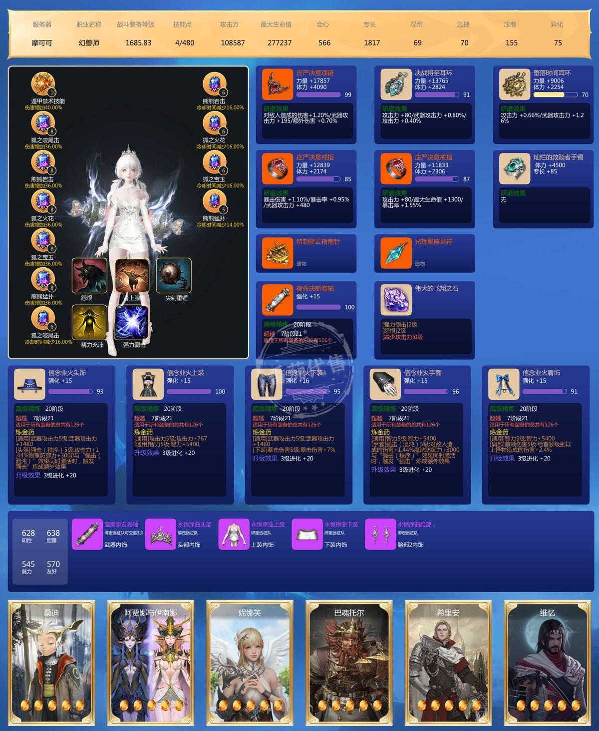 顶级收集。可交易宝石合成完24块T4八级。前六个角色50星满超越满高阶。满月天空绑定,其他角色天空可交易。一千二百多万邮寄额度。附赠LOL黑色玫瑰400皮