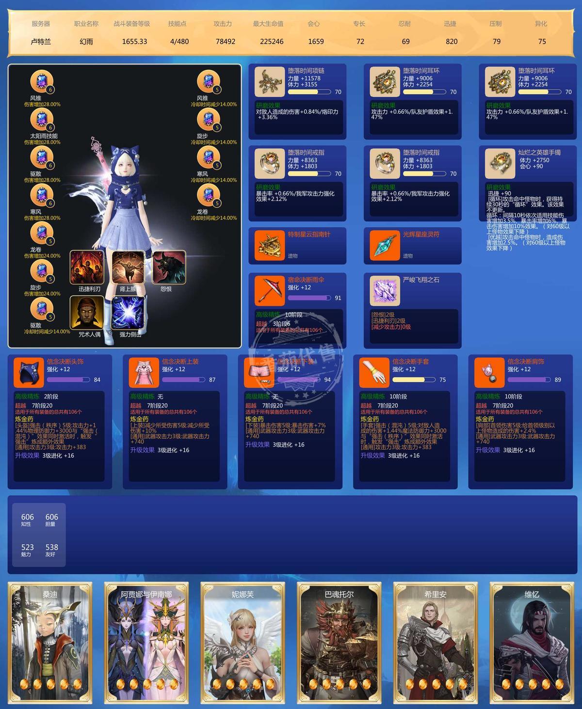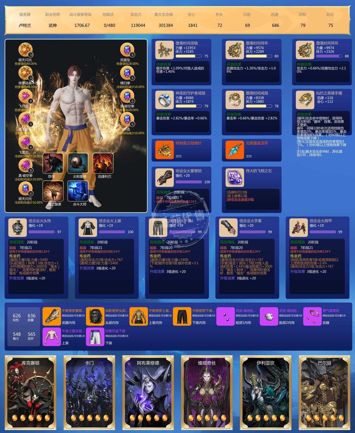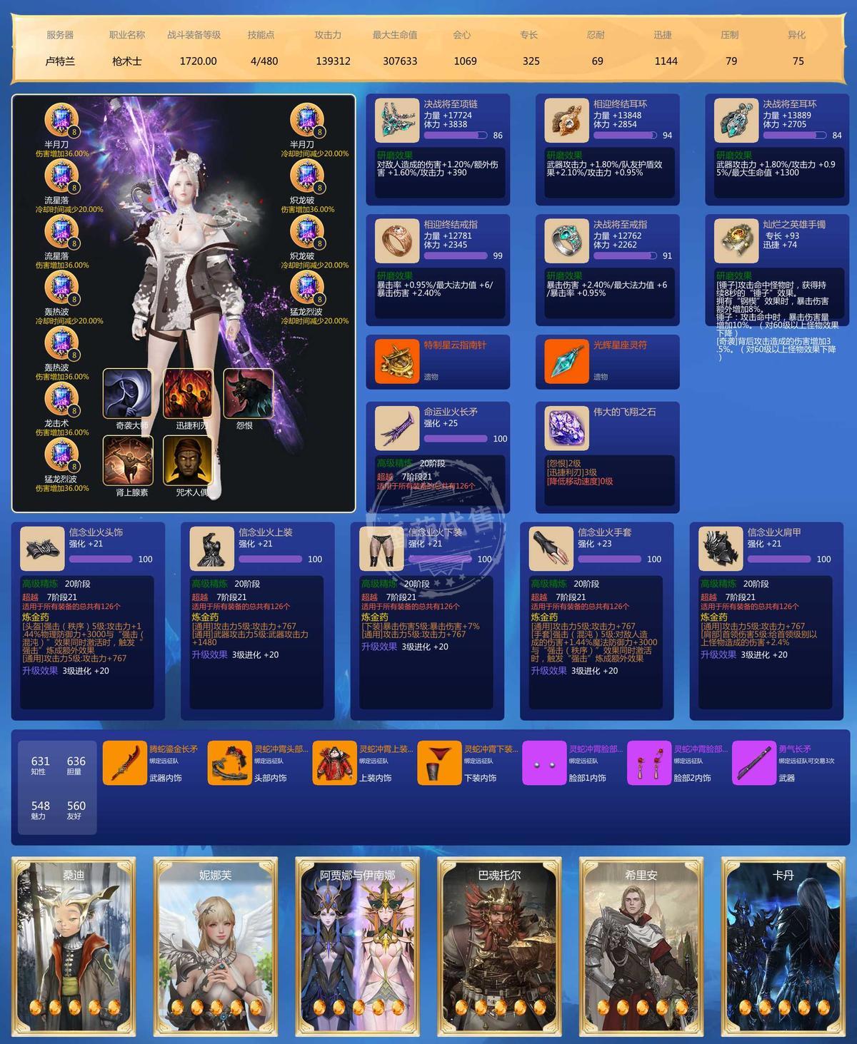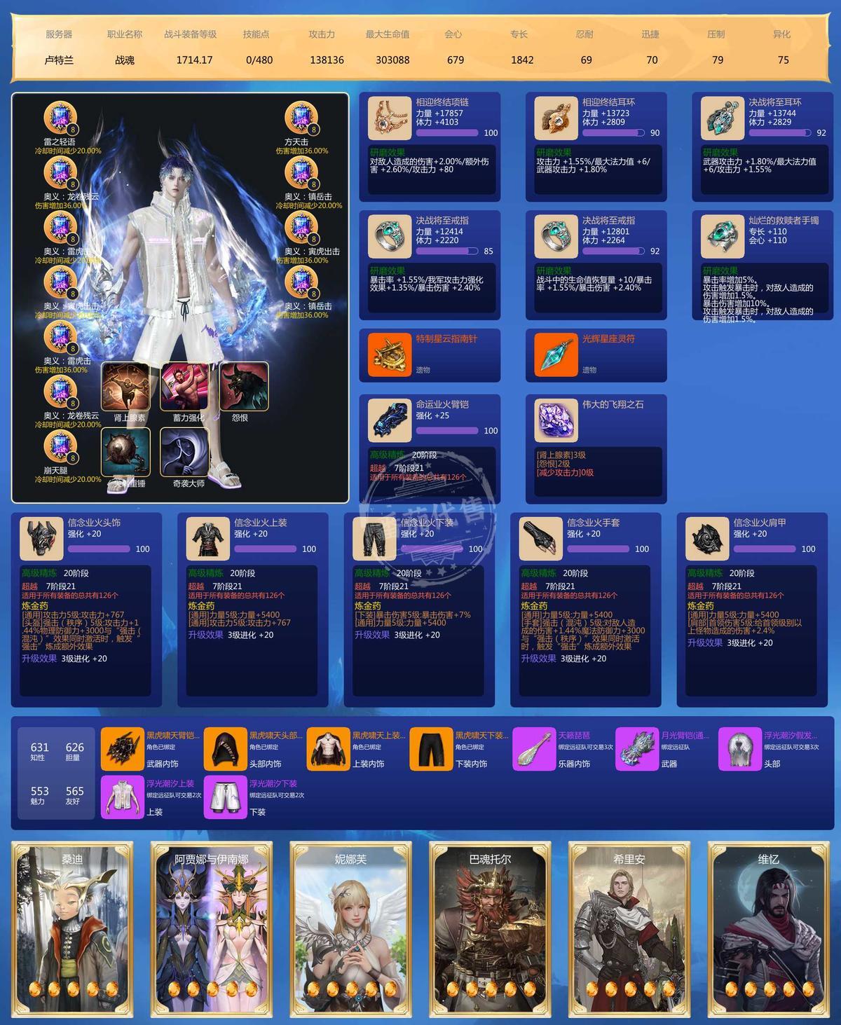 7连,武器全部满品,3个全身满品,4把25,1把23武器,7个97毕业石头。车头刀锋1735,战斗力2300,7套多10级宝石,遗物书都吃满了,仓库里还囤了下个版本的遗物书。首饰都配好了,手镯都是双攻双金。身上有双金,单金首饰都包含在价格里面了,天空也都送了。别拿市面上那些光有25武器的号来对比,这种细节全网就这一个。