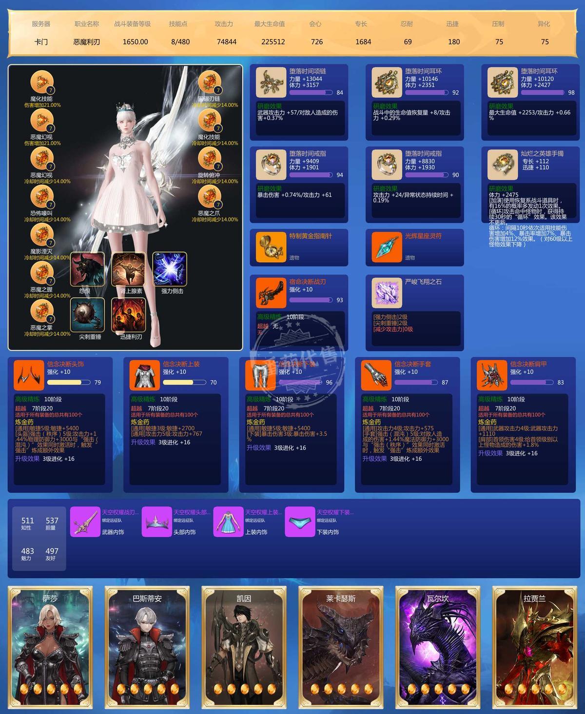 一套天空,一天蛇年,6.2满恶魔伤 全部高阶200双攻炼金 200牌子