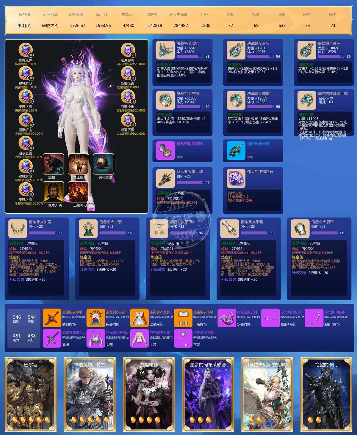 自己看截图,仓库材料多,7套天空,4500万邮寄额度,55万积分。车头1735的幻兽,1730的镰刀,其余4个1726以上,持续提升中。带5套t4的8级宝石,1套9级宝石,2级遗物已经全吃满,70个卷轴,40万金。