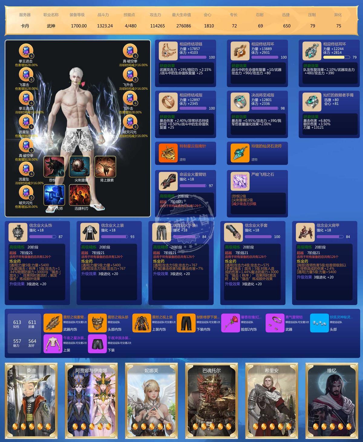 C的战力1660-1500左右 奶战力1500-1400左右 自带44万金40万流通 怨恨吃了5本 带一套可交易天空 带一套T4的8级和一套T4的7级宝石 630万额度 乐园跟进度 有前百的角色 副本也是跟进度的 这周没打本 只打了一个困冰P1 牢P2了 受不了了转战游戏了 通行证买了 喜欢的大佬拿下吧 二次用了 可人脸包赔