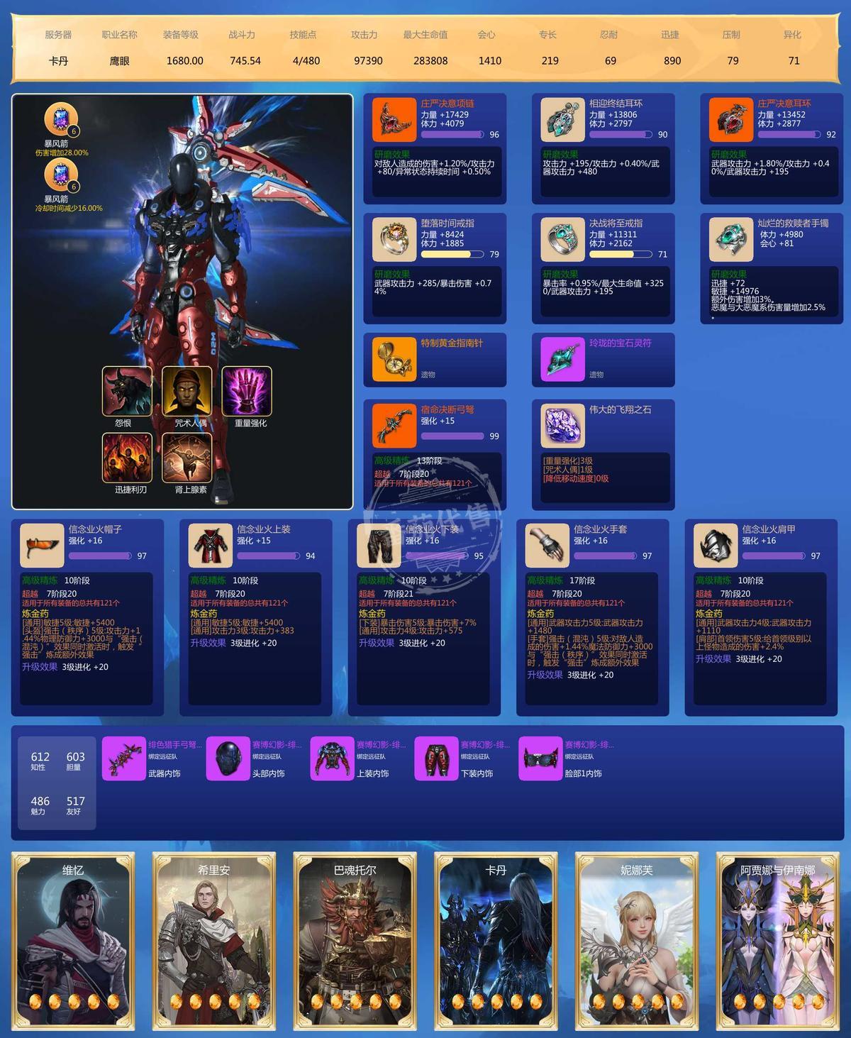 MY129443号 1702+5 1680,车头97石头,武器全高品质,10个7宝+5个8宝,三十万金,还想问什么细节可直接问