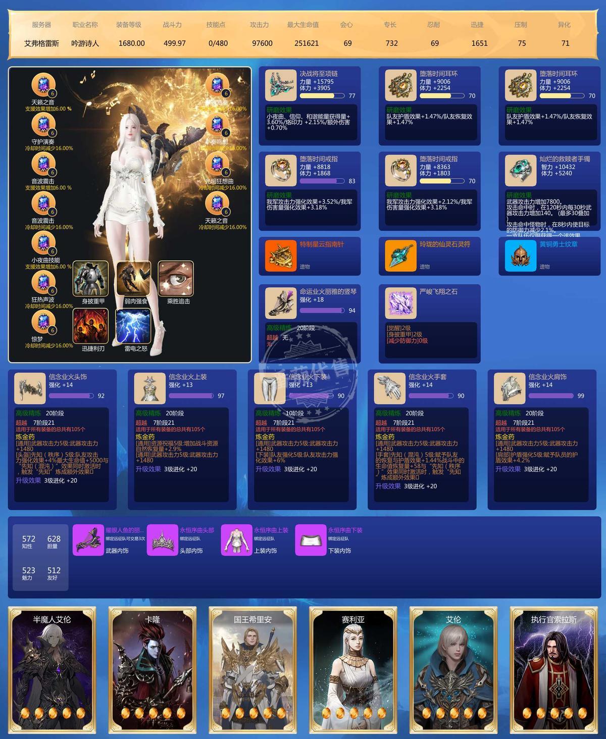 MY129495号 4个毕业97其中幻兽107,热门角色4个8级,8个7级宝石