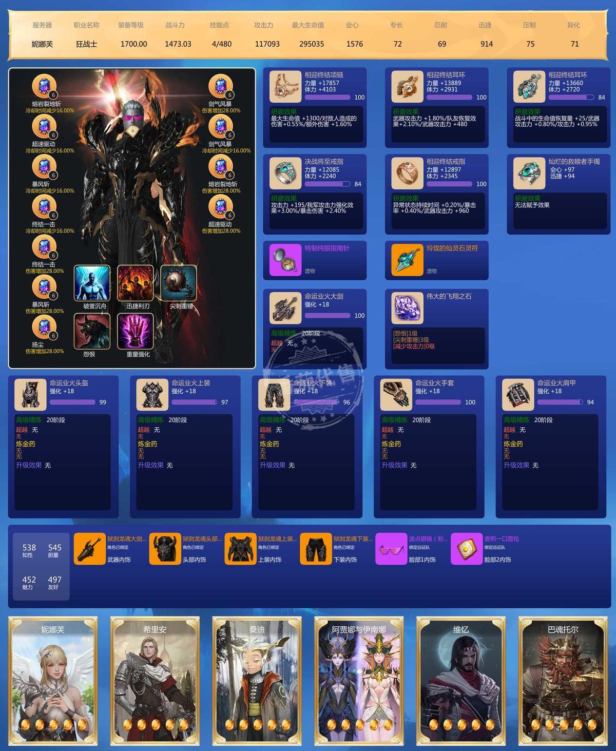 3把百品武器,正常打造,武器一把20,主号1710,其他号都17~18武器,心血号。细节卡牌很好,仓库材料也挺多的