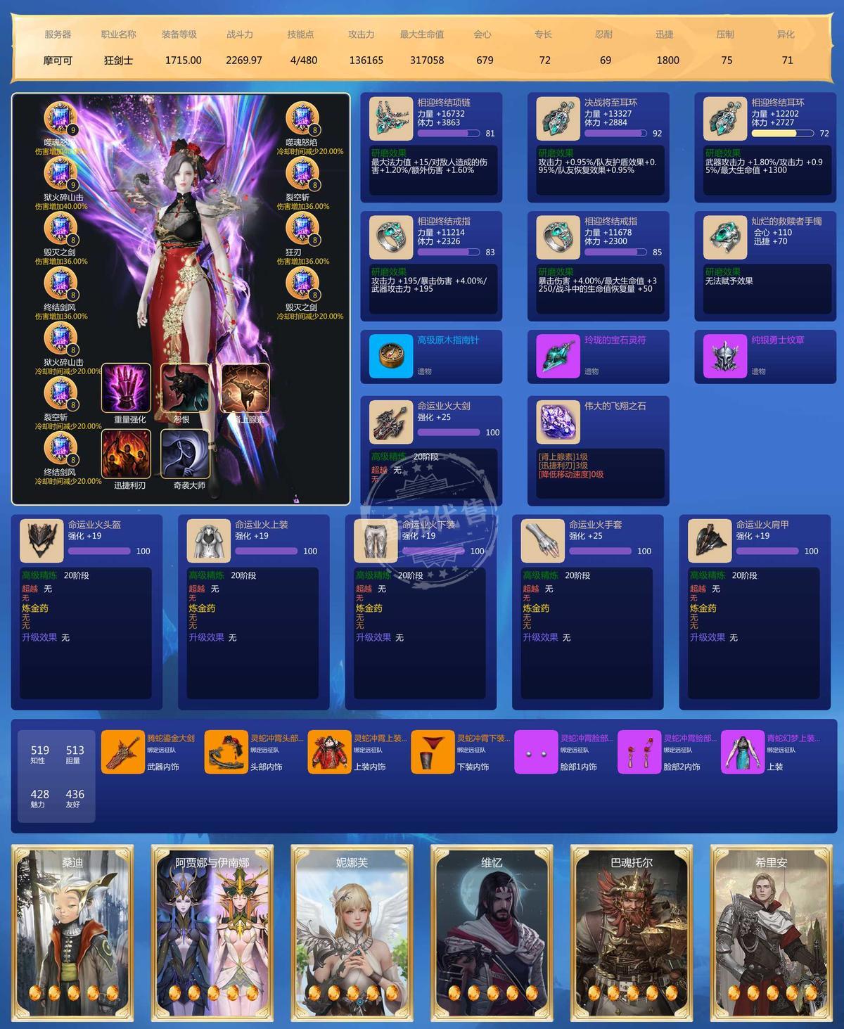 带宝石16个9 30个8 5000多万邮寄额度 仓库还有一套蛇年天空 一个首饰箱子 一个可交易双金项链 火卡雷卡土卡24觉 其余自己看吧 不清楚让客服问我