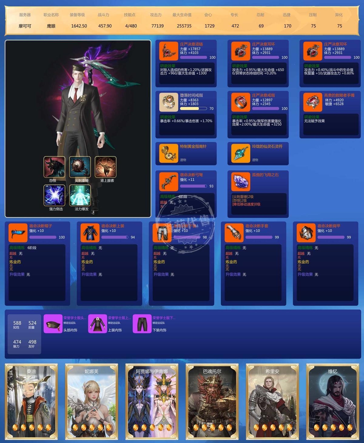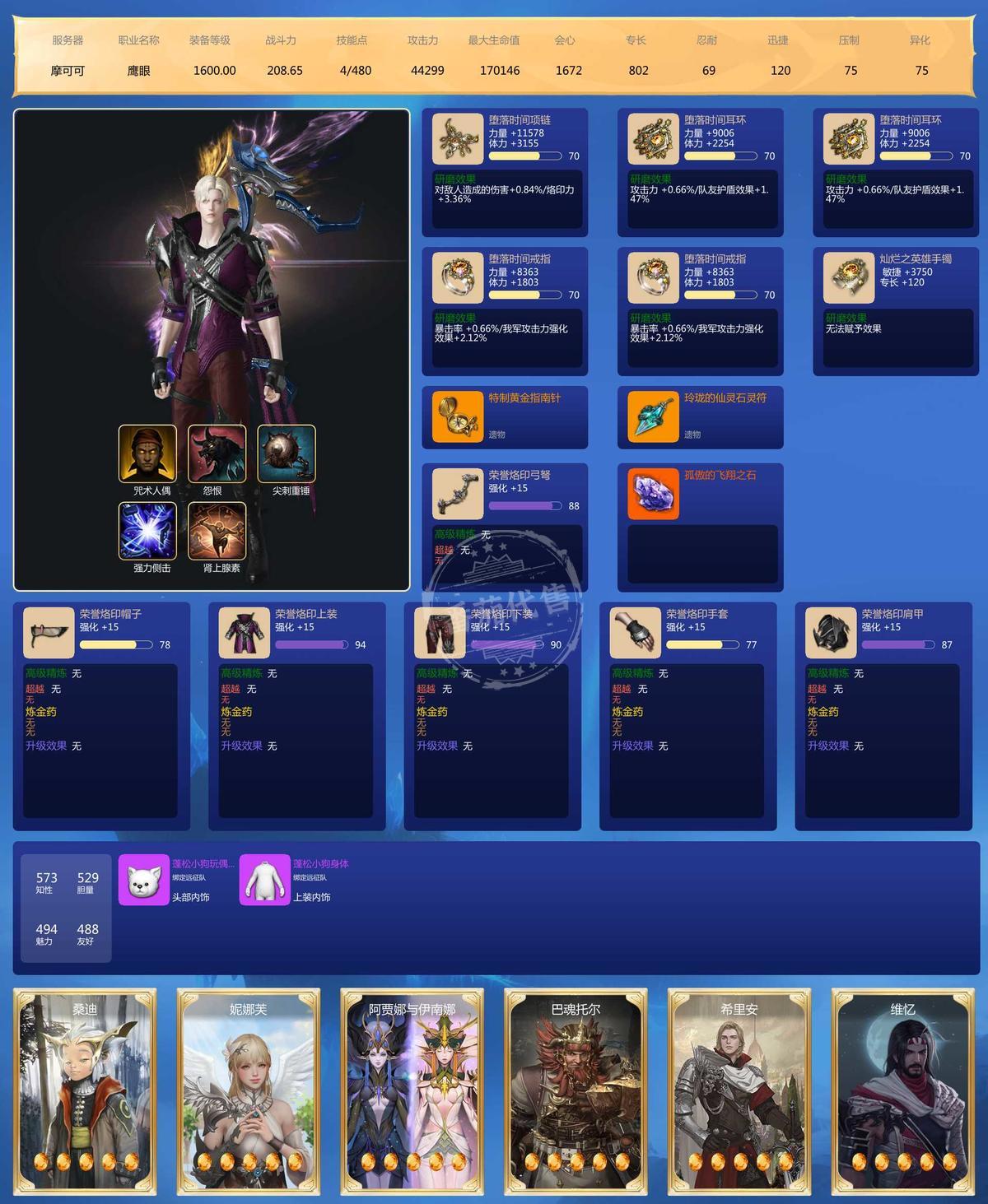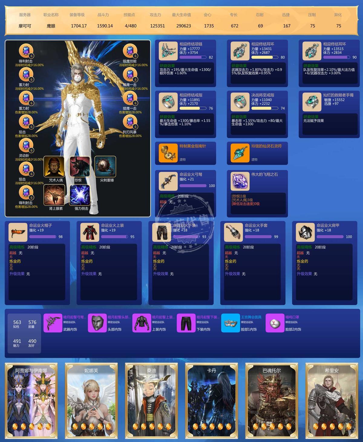 MY129635号 大号2500➕战斗力41毕业宝石,3个鹰眼小号差不多也有2000战斗力,6个9宝,5个8宝