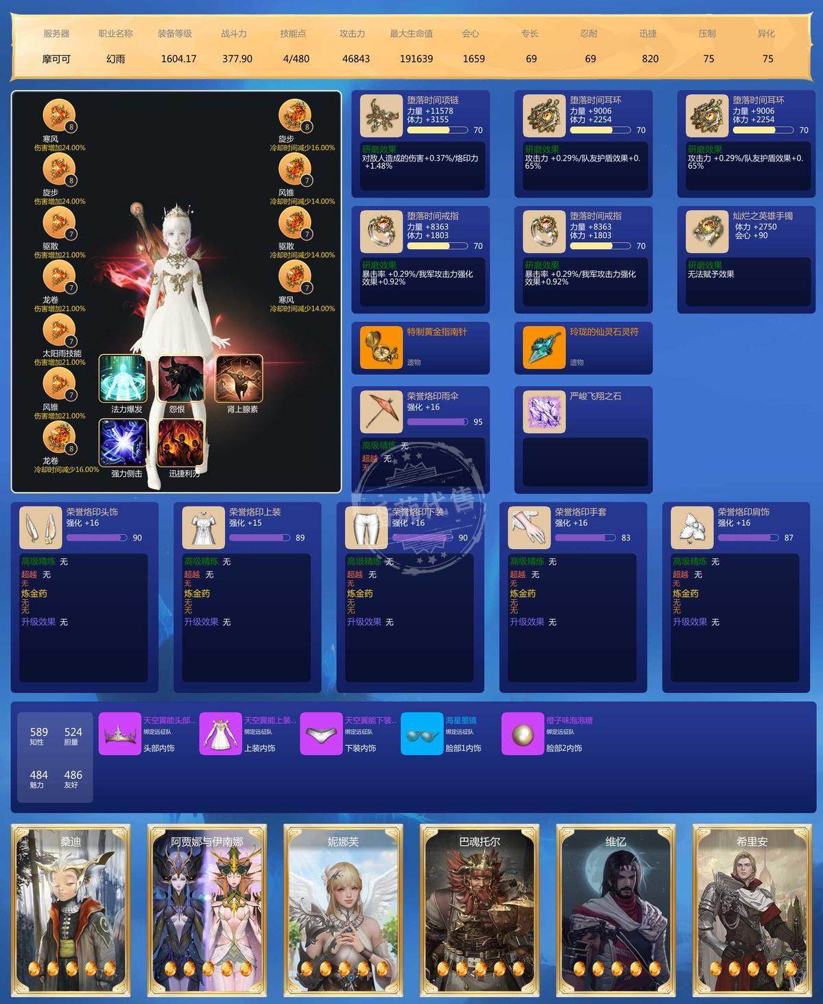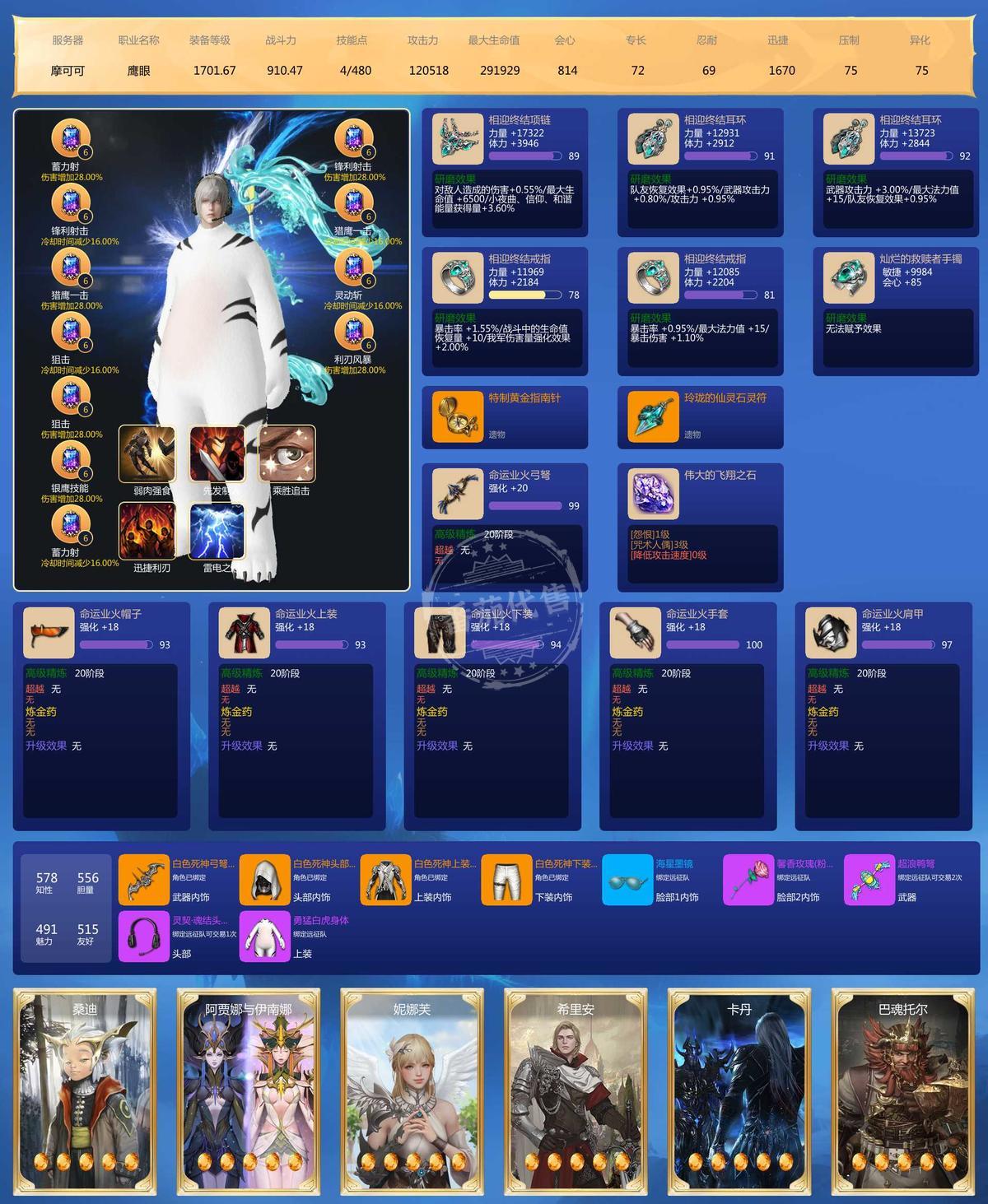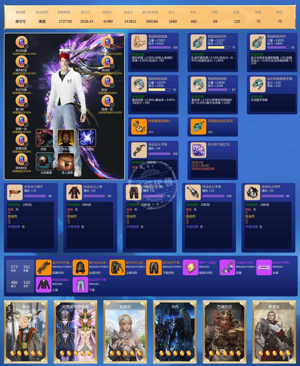 MY129635号 大号2500➕战斗力41毕业宝石,3个鹰眼小号差不多也有2000战斗力,6个9宝,5个8宝