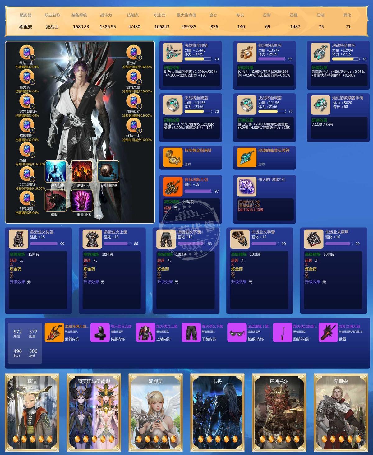 MY129644号 3狂战3红拳,4个97,3套积分,14个角色栏