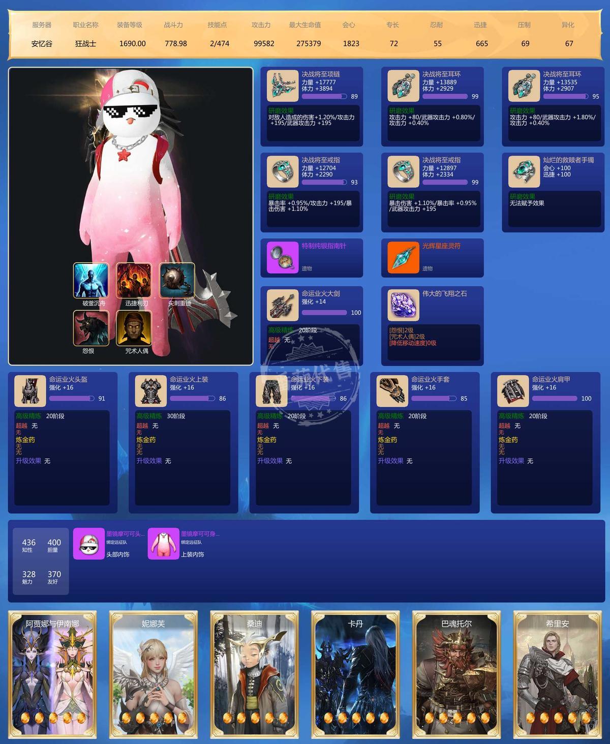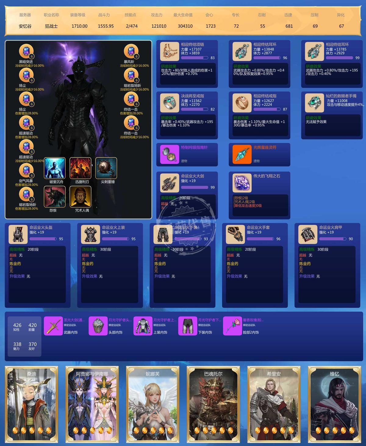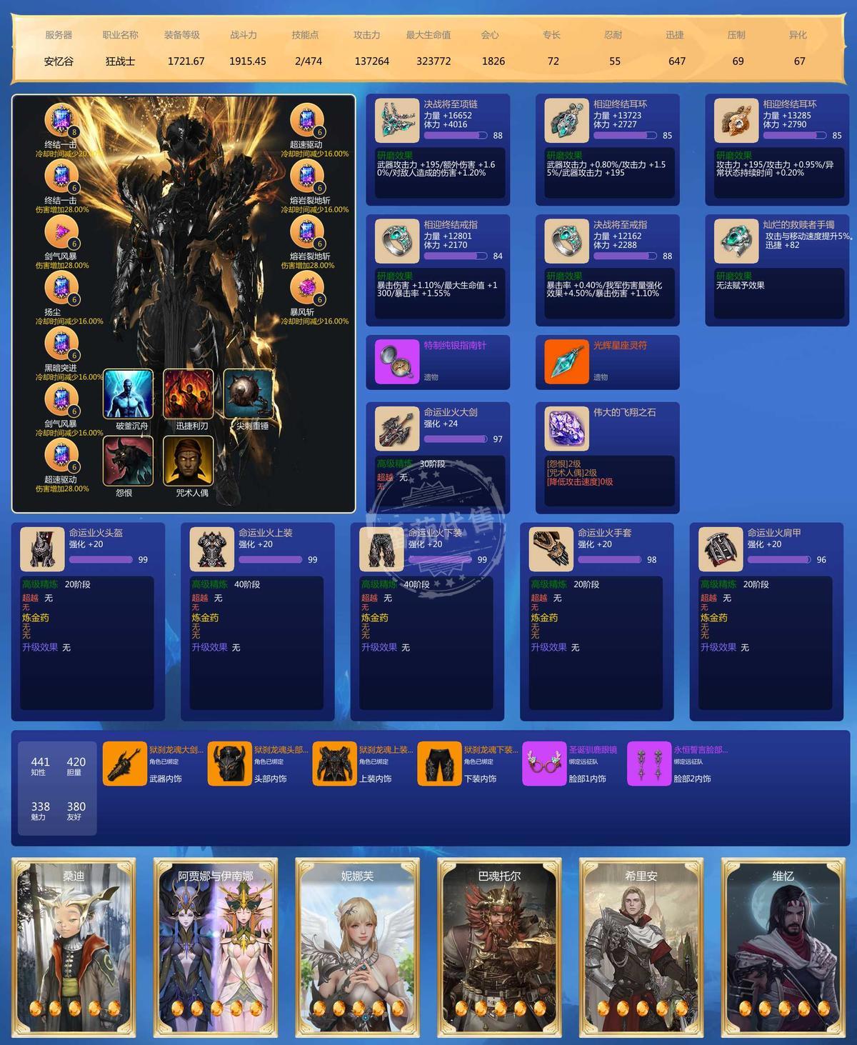 MY129674号 四连狂战,+24武器,1721装等,+19武器 1710 装等,有大量资源和下个版本的土卡,30光卡,这周副本,乐园都没打,到手直接爽玩。其他装等装备都不低。