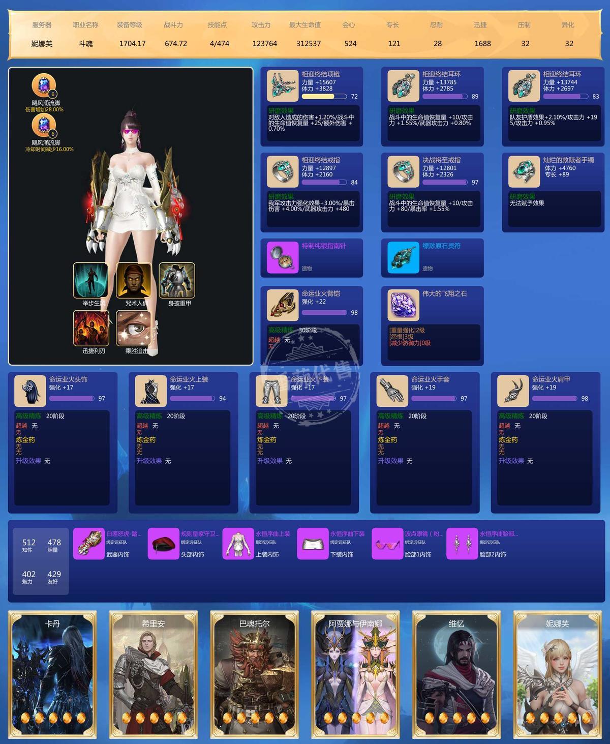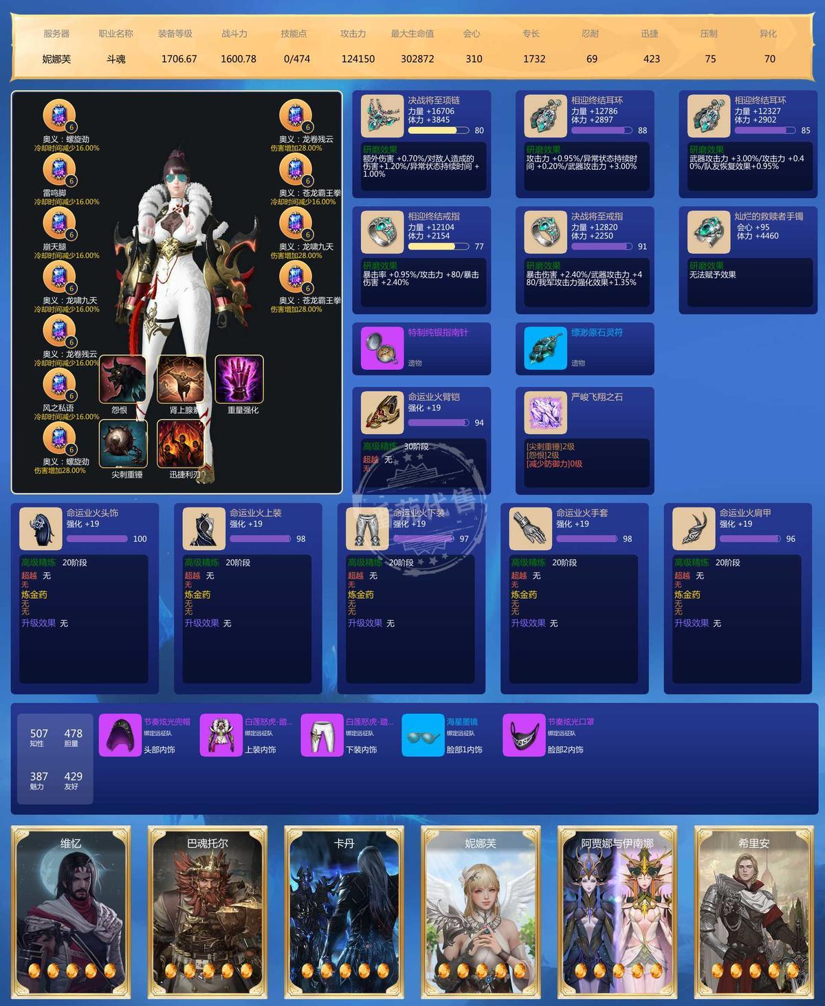 6连1700斗魂-武器全部高阶30-带T4一套宝石8级X8-9级X3价值1400-车头武器22-97石头-车头2200+战斗力 其他全部1900+战斗力-不带金币7个角色栏海图顿悟点已出-带一套可交易天空-50W绑金-快车未用