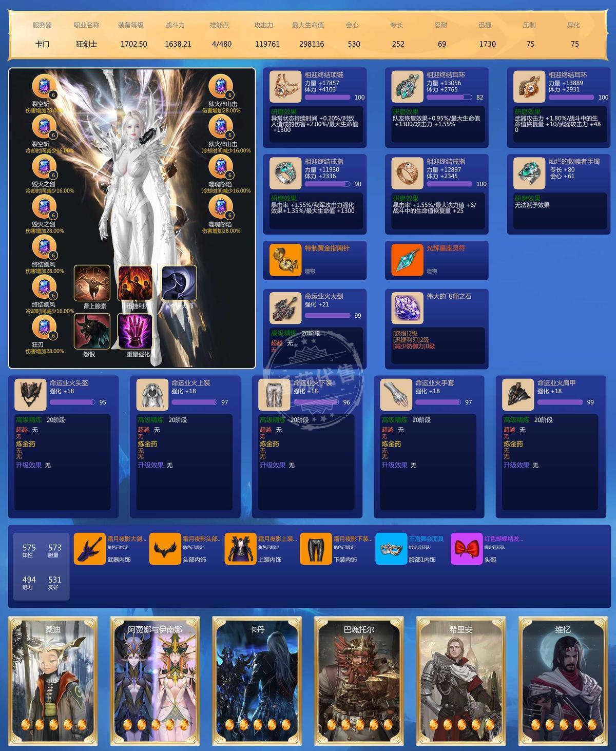 细节很好,实际装等比图片要高点,附带金币,材料多,仓库有宝石直接送,可接受小刀