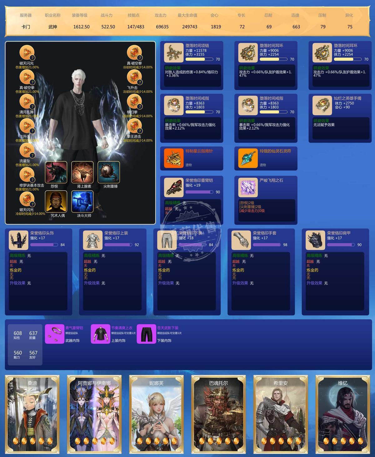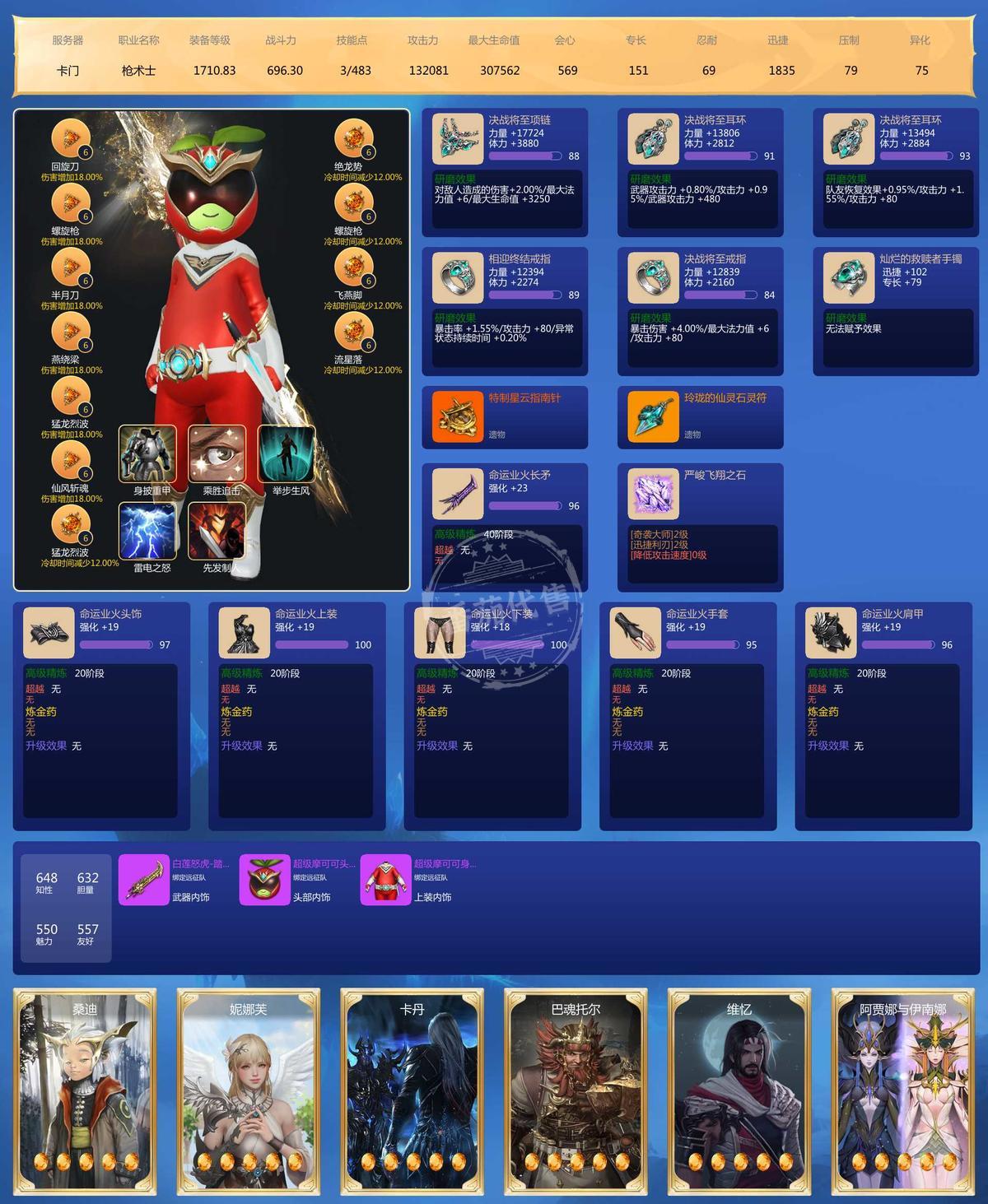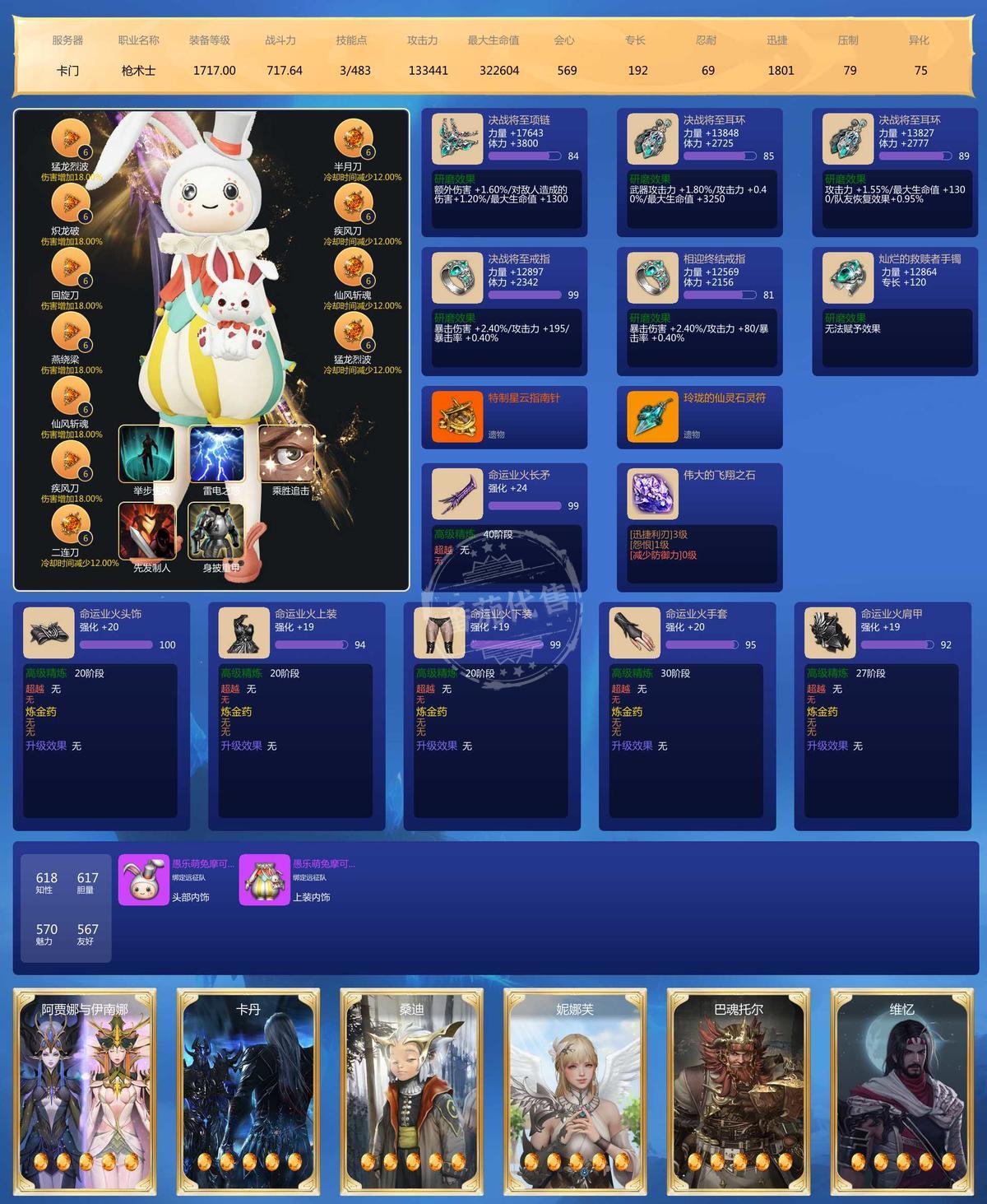 大号战力3400 小号2700-2900.每个角色都有巅峰和节制两系手镯,腰子书也吃了 雷图卡都快30了 用自选可以30一个。15的书已经买好了 仓库里。