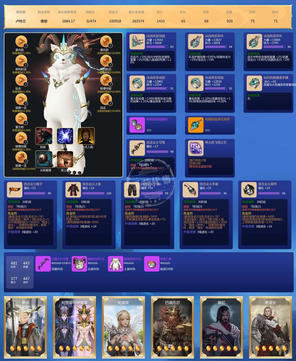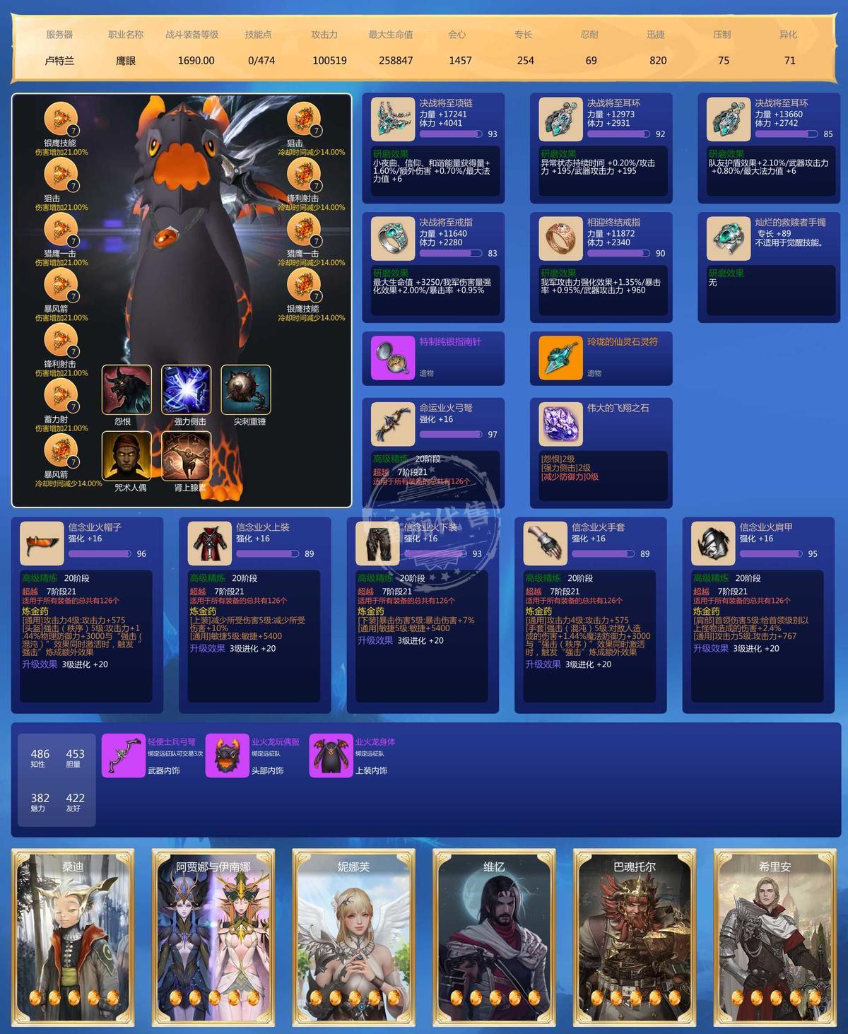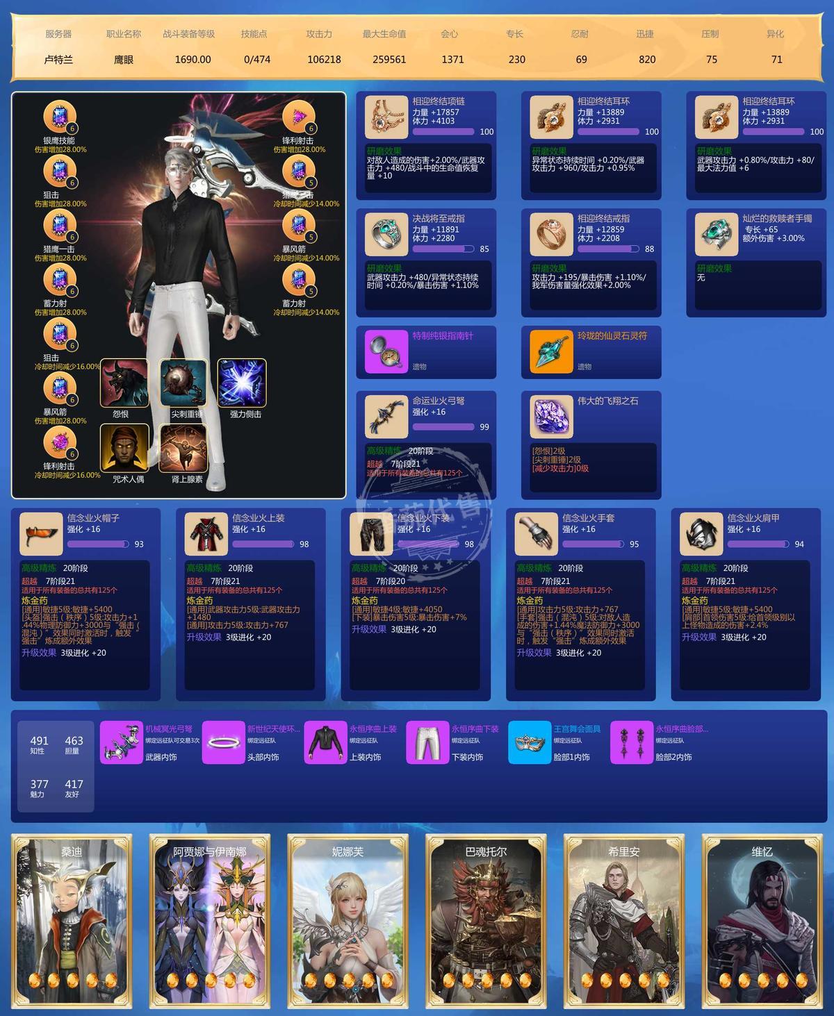 连体鹰眼 全身高阶 20.细节完美..平均战力1400+.首饰已配好.带 T4 8级 宝石套