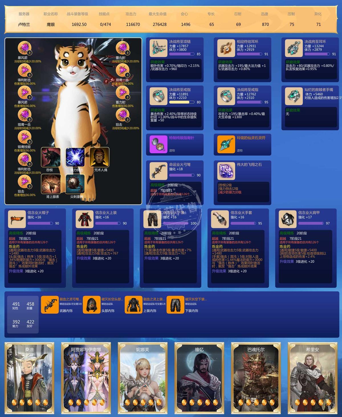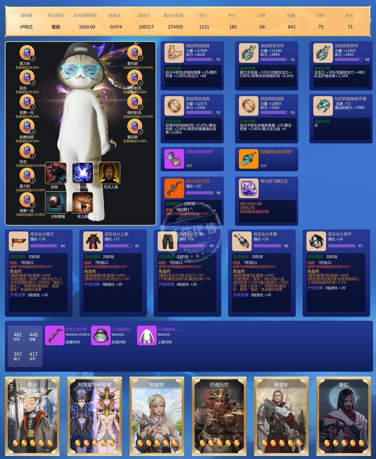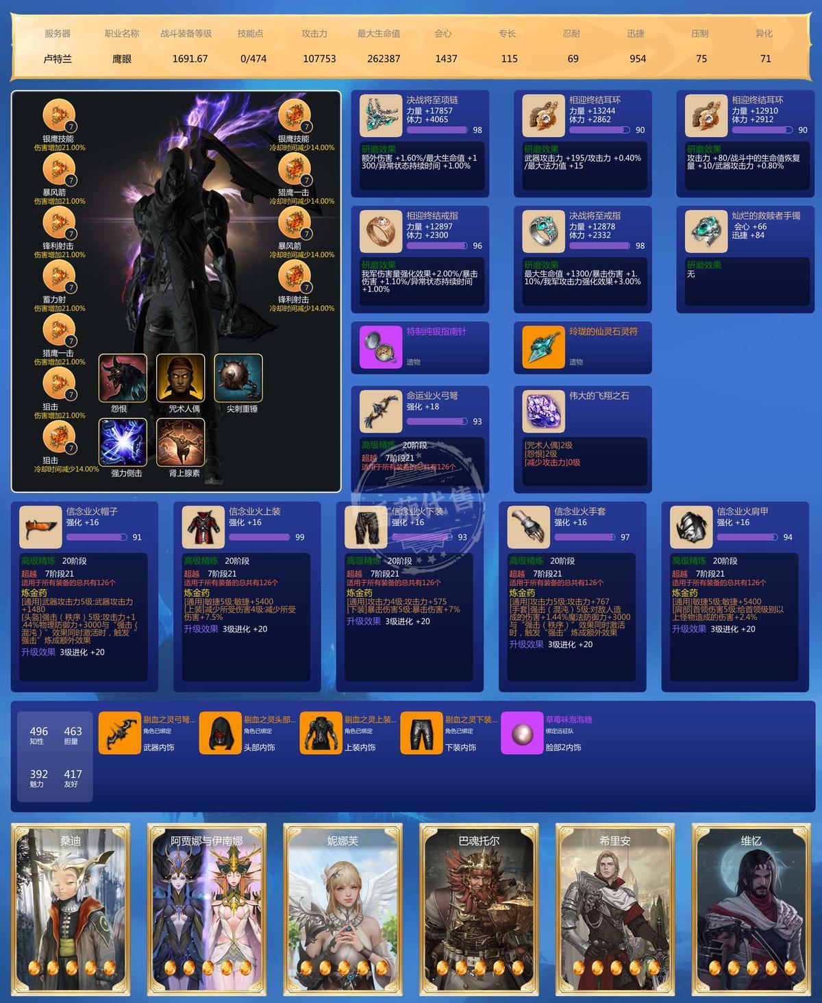 连体鹰眼 全身高阶 20.细节完美..平均战力1400+.首饰已配好.带 T4 8级 宝石套