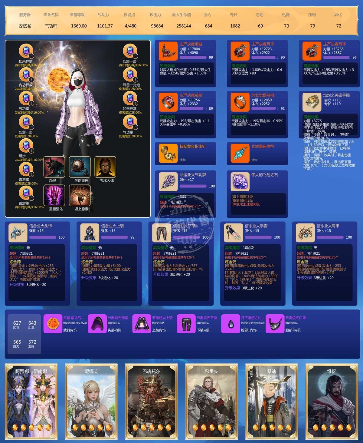 气功差一件全身百品,底子好,三套积分,超多材料,1500箱奥莱