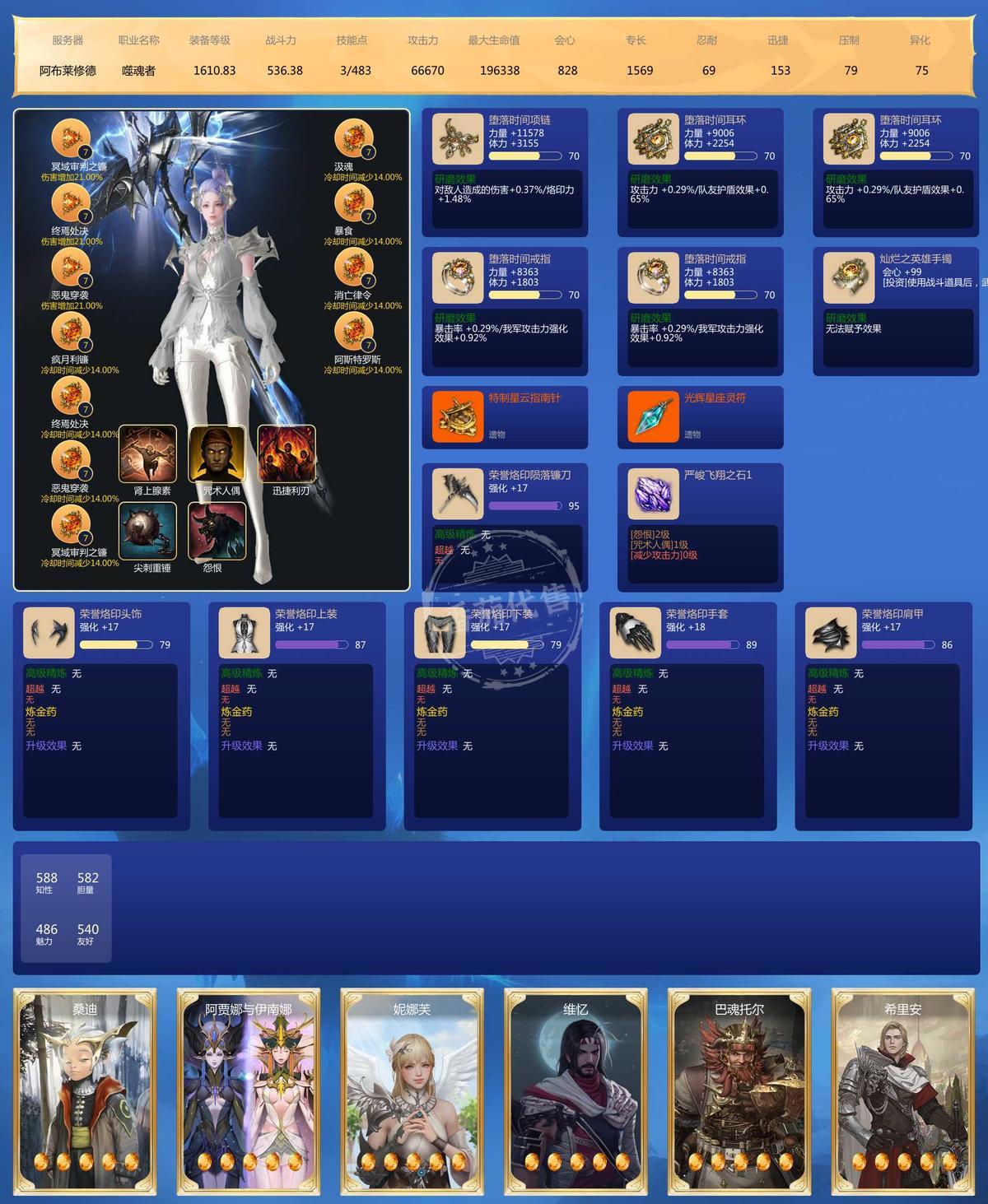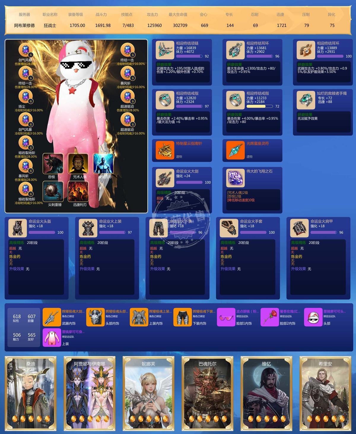 车头1705装等,百品24武器,2000加战力。车身全部1700装等,2个97石头,1个百品武器,战力全部1700加。高收集,远征320级。流通金953万,1颗9级石头,10颗8级石头,2颗7级石头。号上材料无数。