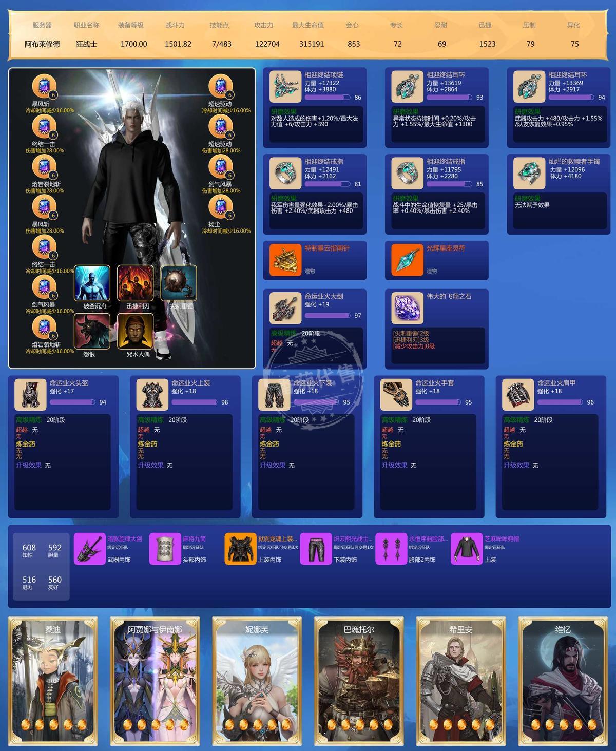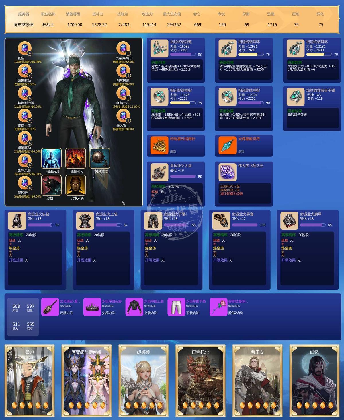 MY129707号 6连黑狂,装等全部1700以上,流通金953万,宝石1颗9级10颗8级,2颗7级