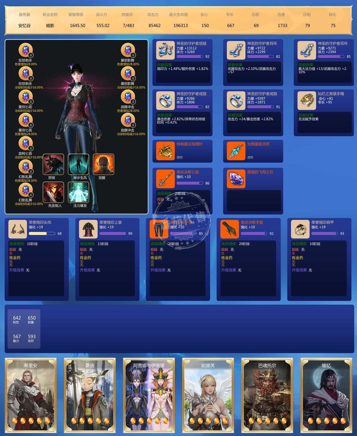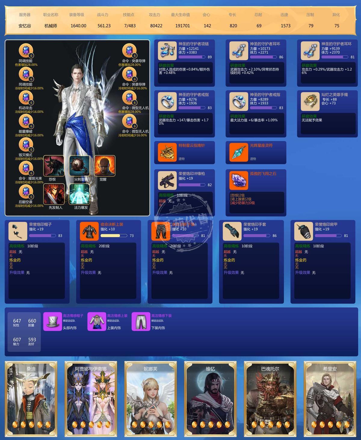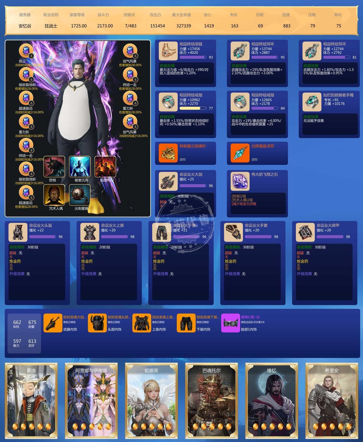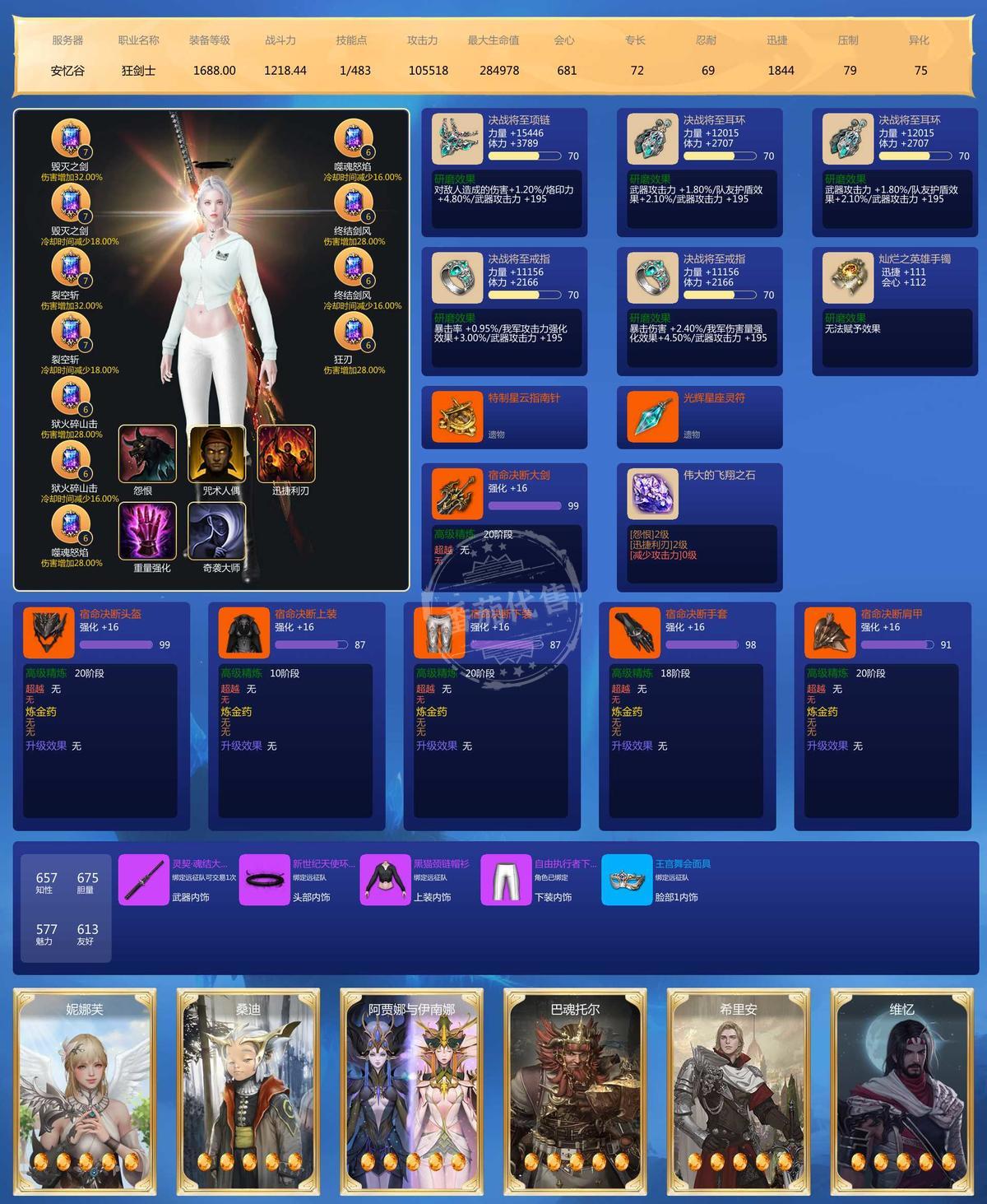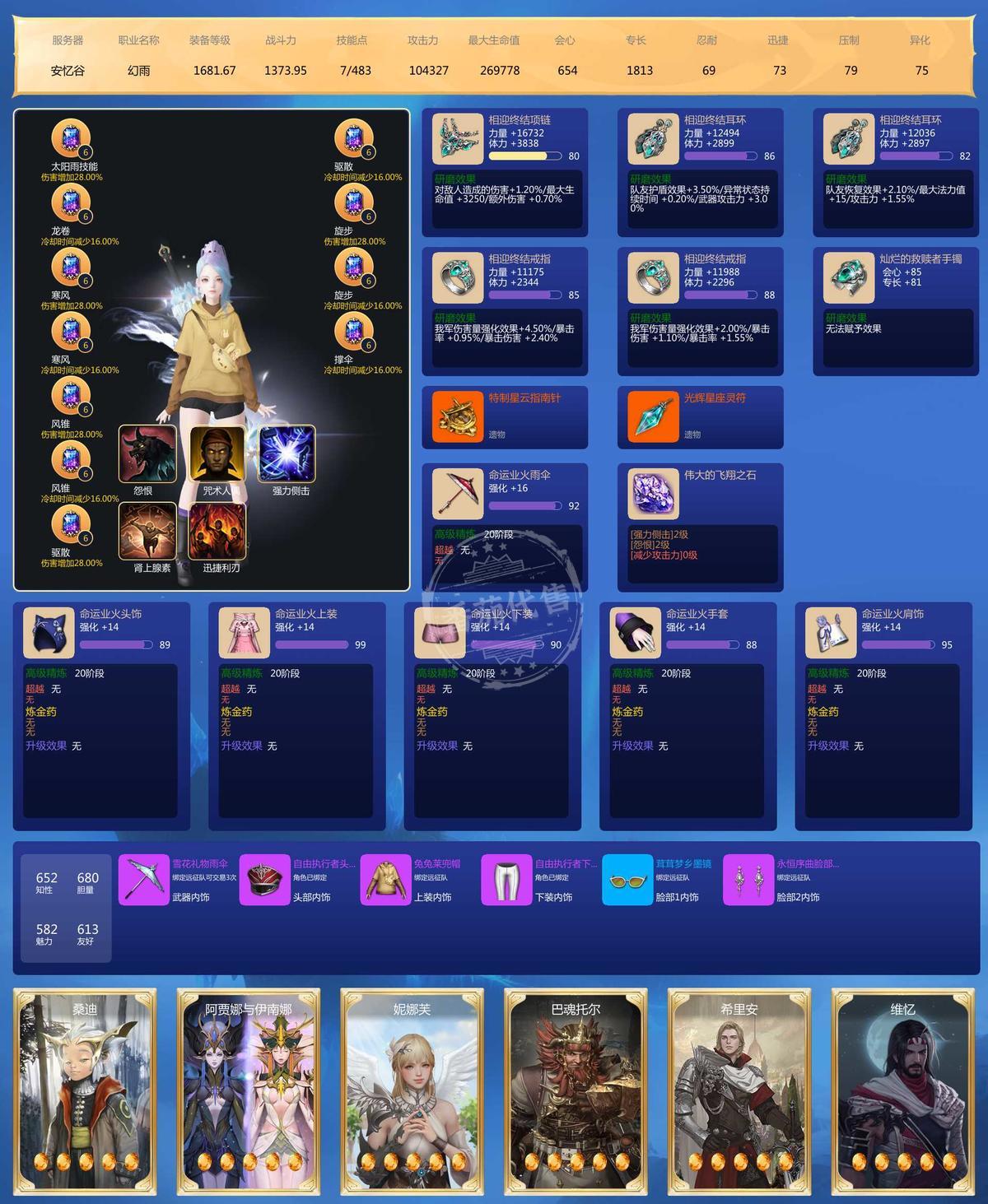 商品描述: 究极心血开服全勤号 354级远征 邮寄额度2400w 业力车头3个6 其他全部2个6 武器高阶三个40 三个30 点了很多防具的30 首饰全部单金以上 车头套六战斗力2100多 其他的号 一个1900三个1800一个1700多 遗物书吃了很多 怨恨两颗豆 咒术差两本满 所有卡片都在24以上 有几个快30的 背包有六七本自选卡牌 每个号红蓝石头10w以上 背包有800多箱精炼材料 乐园排名全部前30 收集摩乐乐种子 海图啥的全满 号上的阿特罗 血药 资源 游戏没了都用不完 生活方面 2500多跃动精华