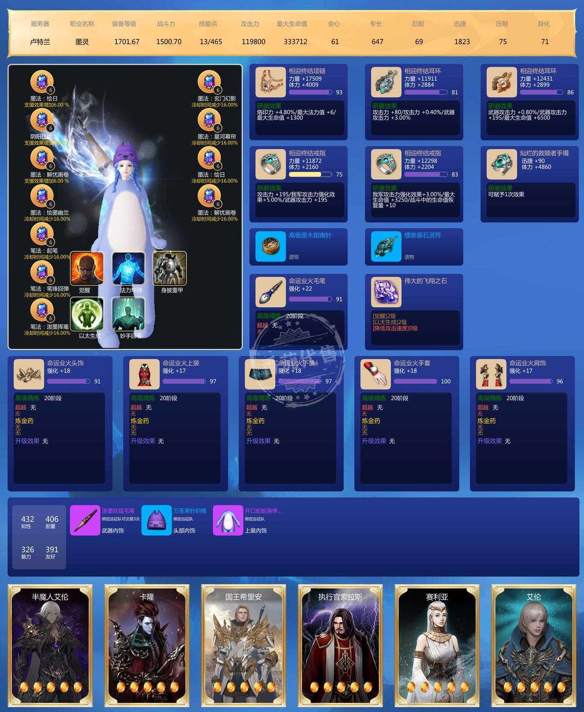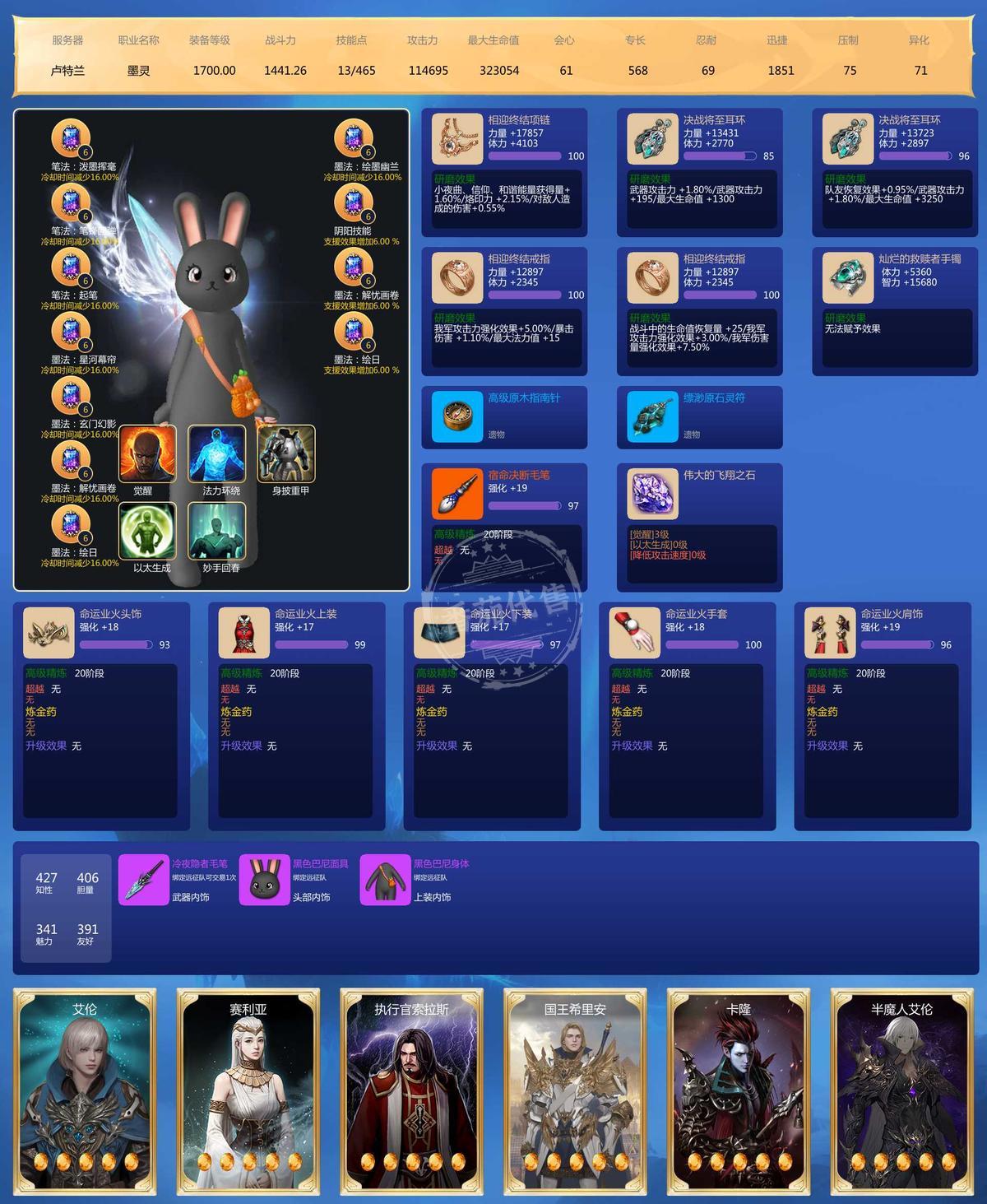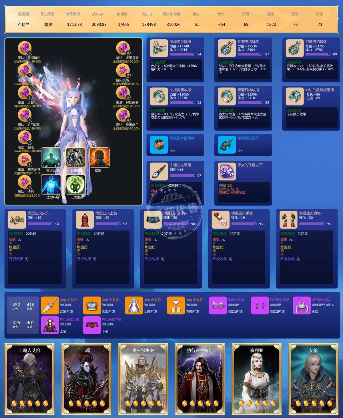 带套8宝石,车头1713,剩下五个墨灵1700,每个号上都有材料