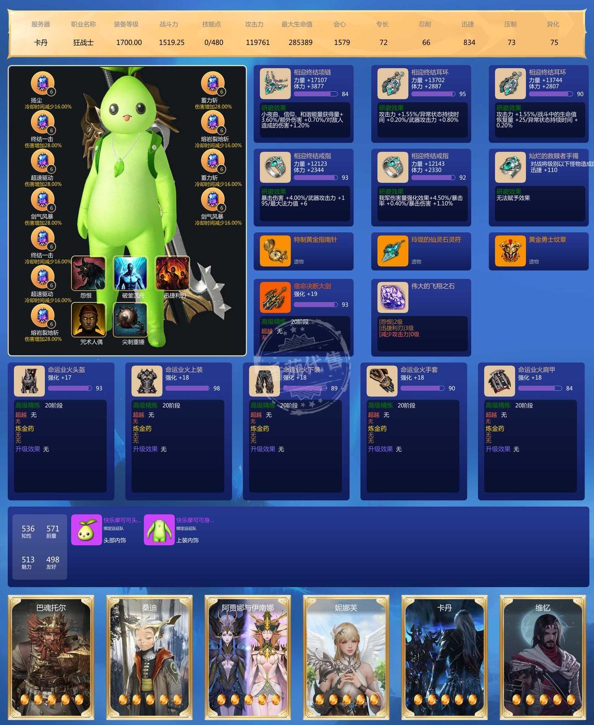 仓库材料巨多 战力均1600左右 买套宝石随便2000 不砍便宜出 来个秒的