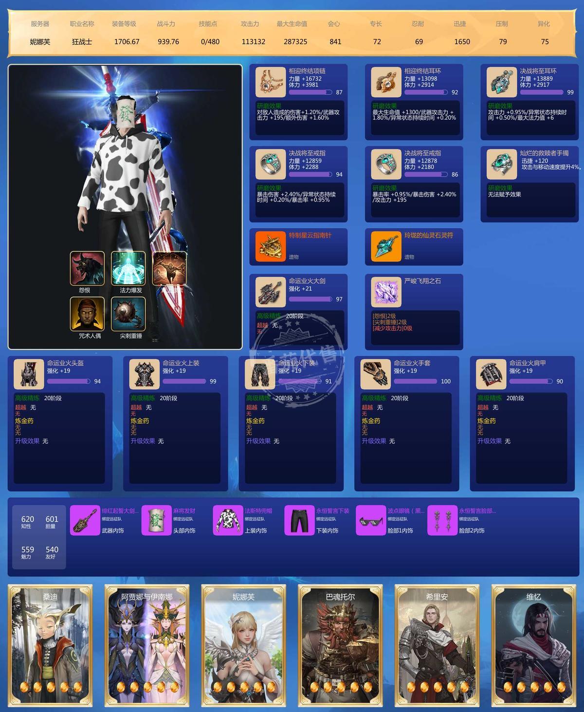 套9连体狂战,带2套天空,拍卖行还有几件天空,带15W流通金,几个月没有玩了,业力只点了中间,40高阶没有点